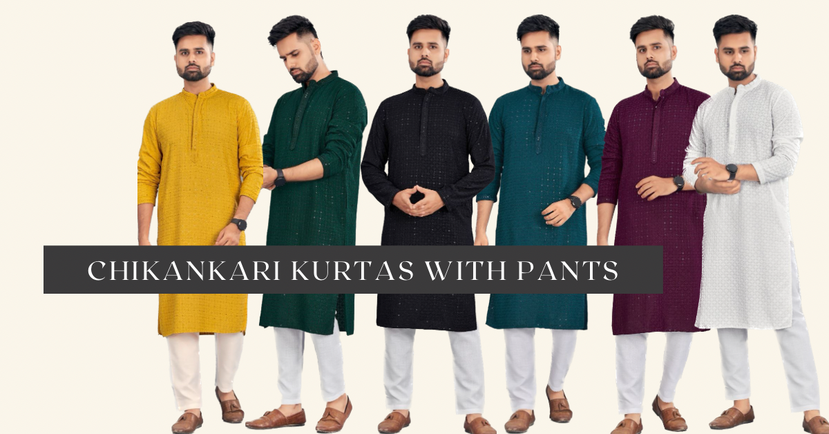 Men’s Lucknowi Chikankari Kurta Set with Pants – Festive & Wedding Ready