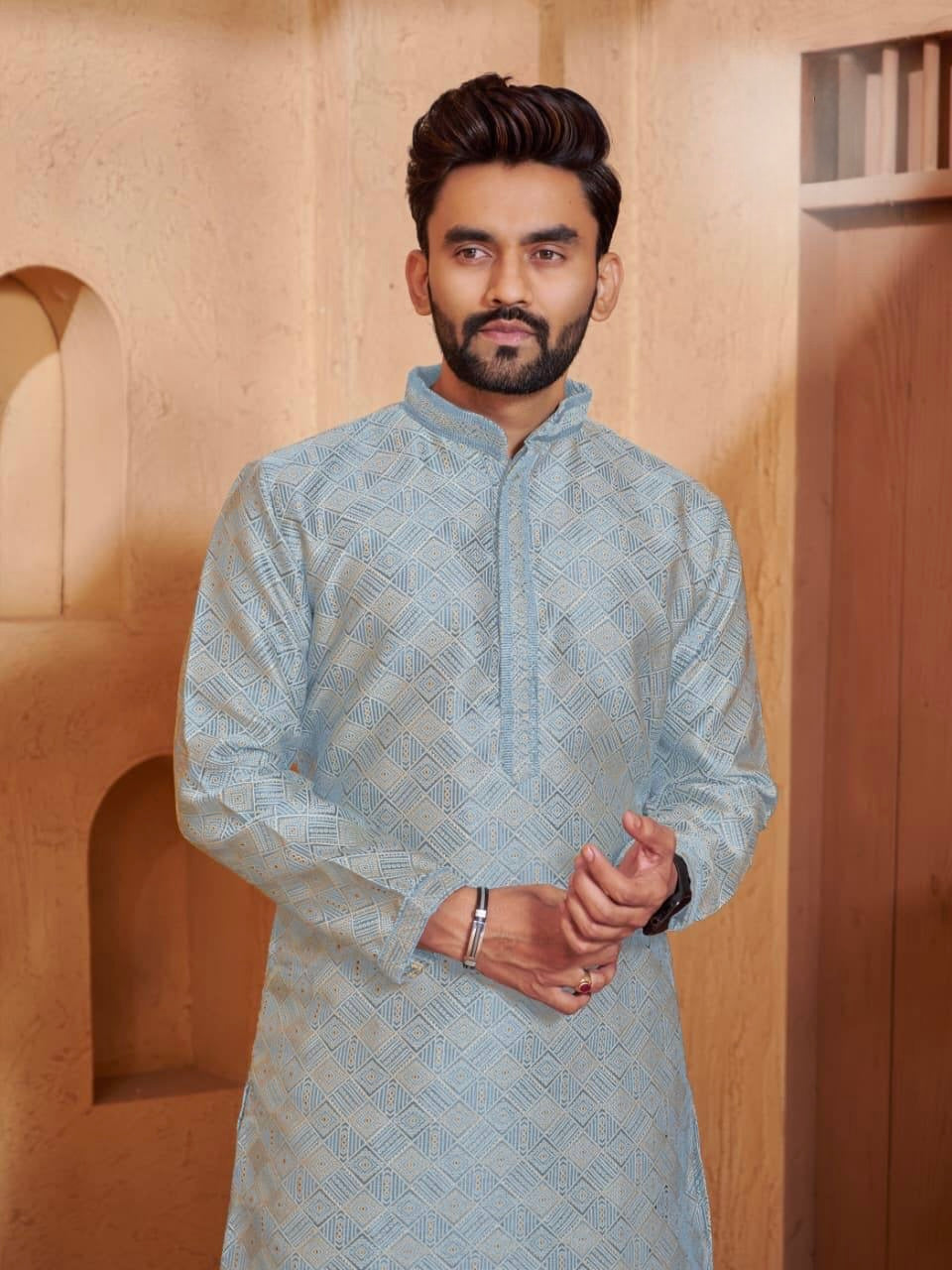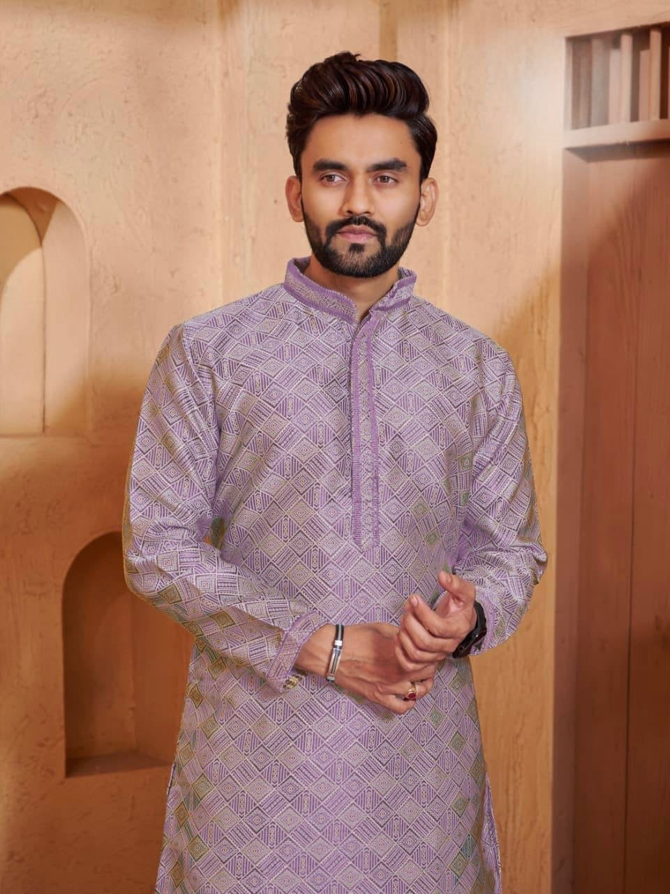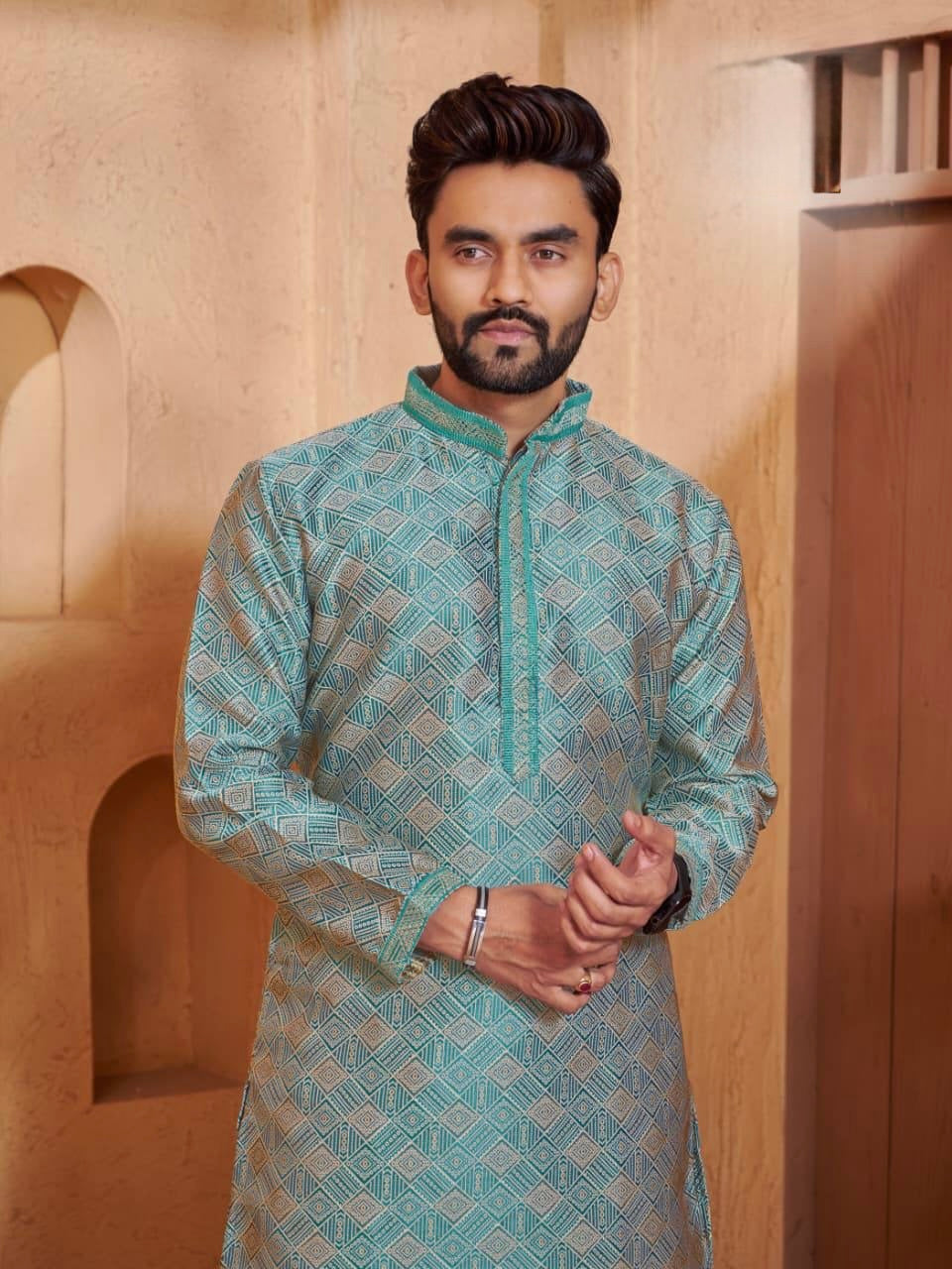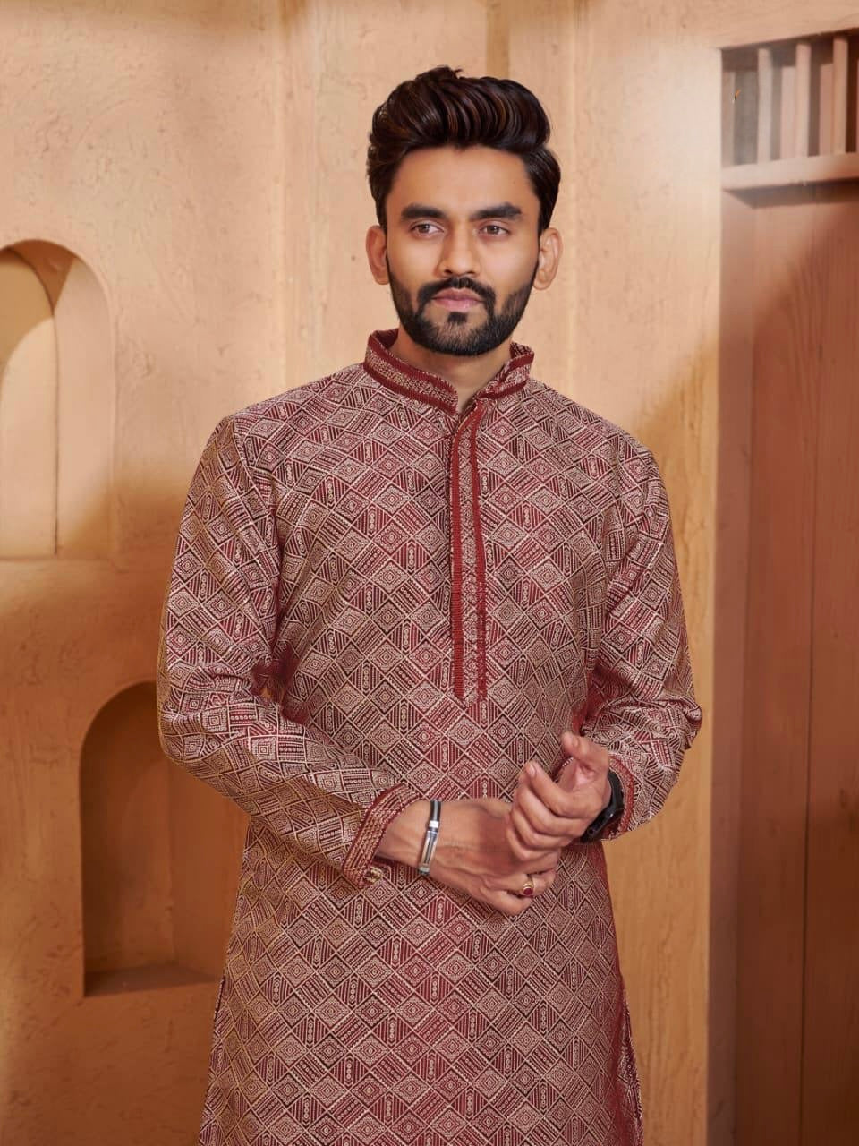 Men’s Jacquard Kurta Set with Silk Pajama