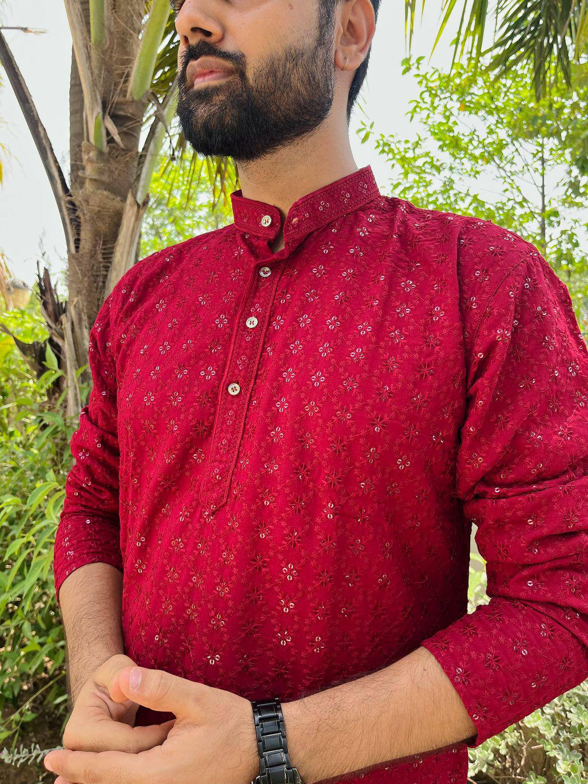 Work: Intricate chikankari thread embroidery with elegant sequin detailing