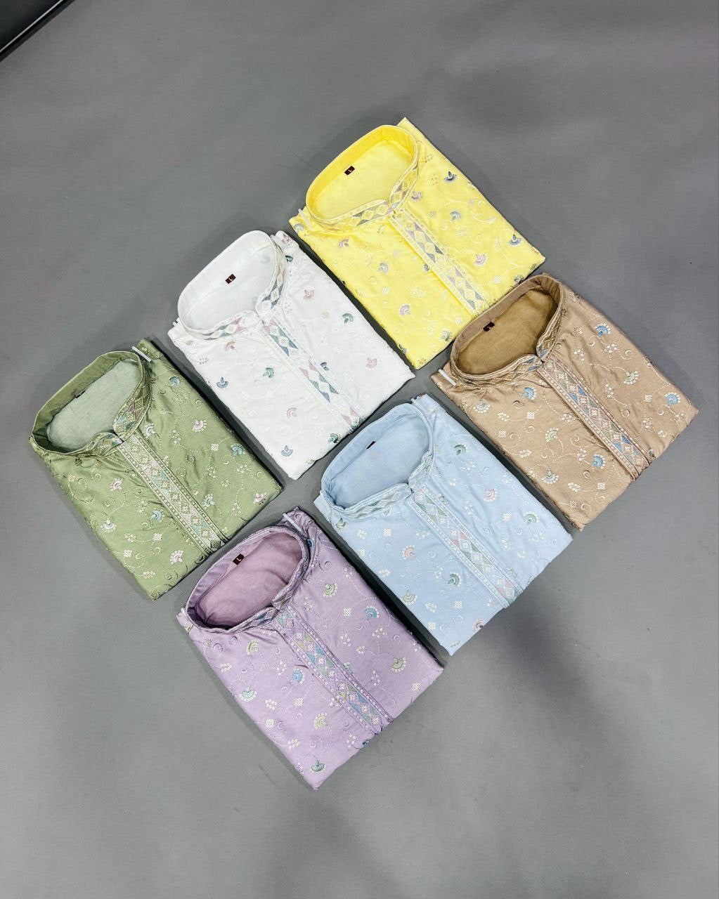 Fabric: Cotton silk kurta for a luxurious feel, paired with a cotton pajama for breathable comfort.