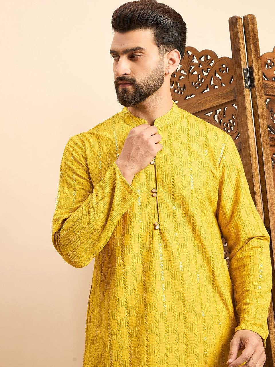 Gorgeous Yellow Rayon Kurta with Sequins Work! Made from high-quality rayon fabric, this kurta is perfect for any occasion. With its elegant sequins work, it adds a touch of sparkle to your outfit. Stay comfortable and stylish with this elegant kurta.