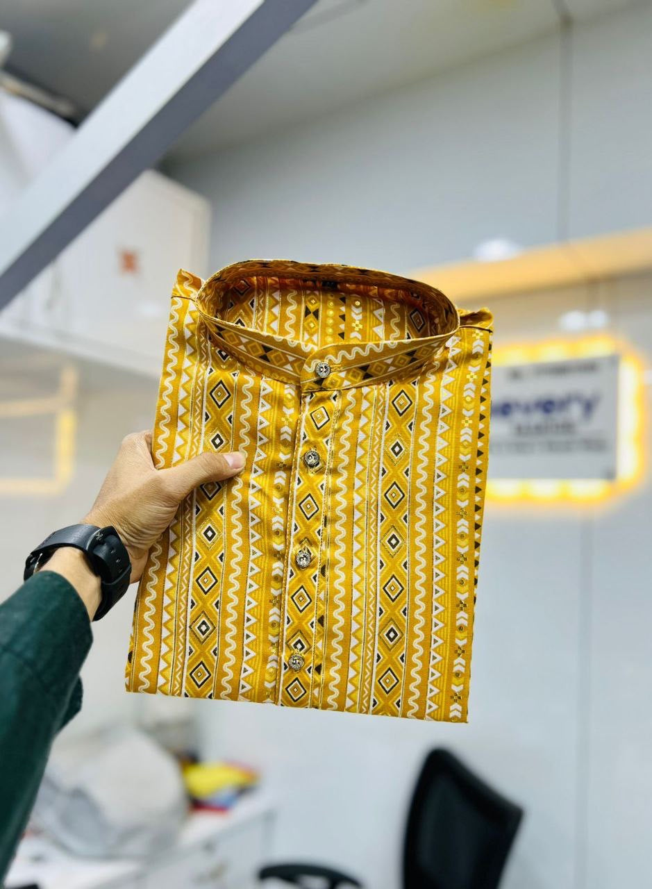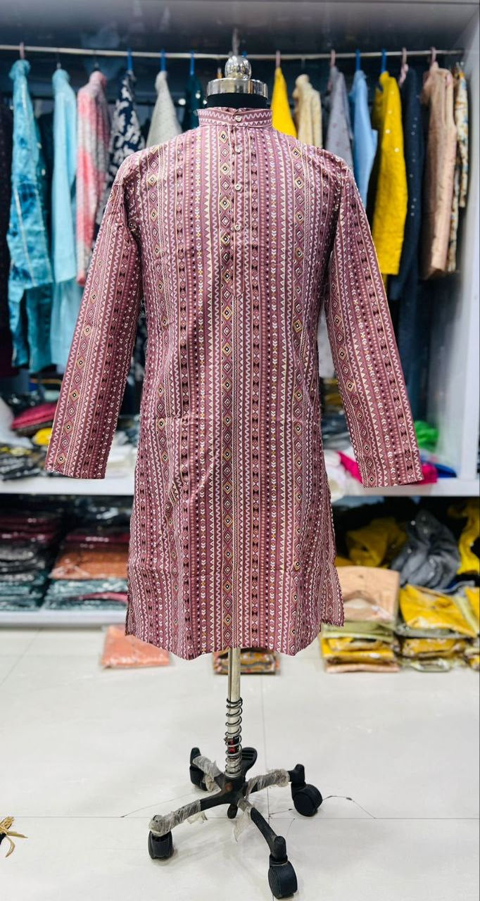 Radiate elegance in our Cotton Kurta with Foil Print, paired perfectly with comfy pyjamas.